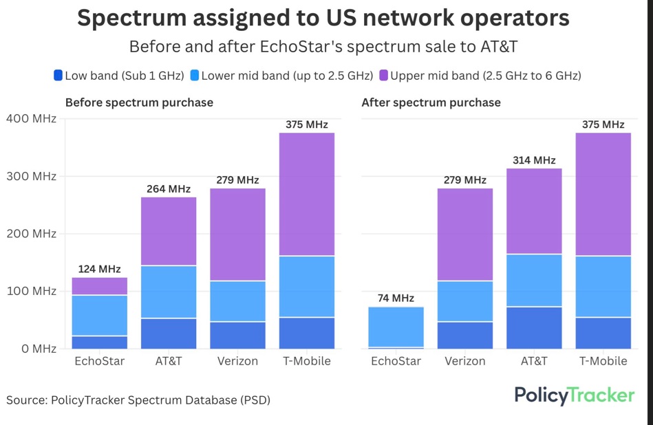 With this move, AT&T’s spectrum holdings now total ~375 MHz, pushing Verizon into third place with ~279 MHz.