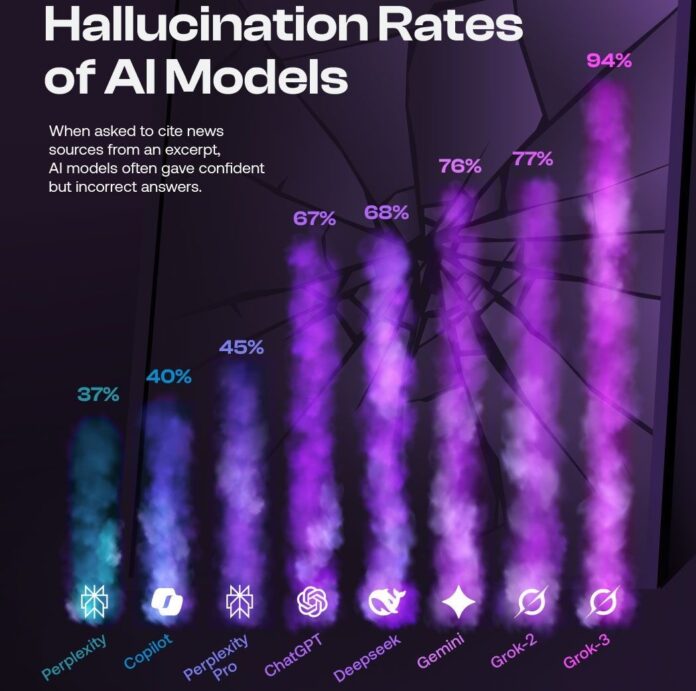 In the study, models were asked to cite news sources from given excerpts. Instead of acknowledging uncertainty, many supplied fabricated references, made-up articles, or incorrect citations.